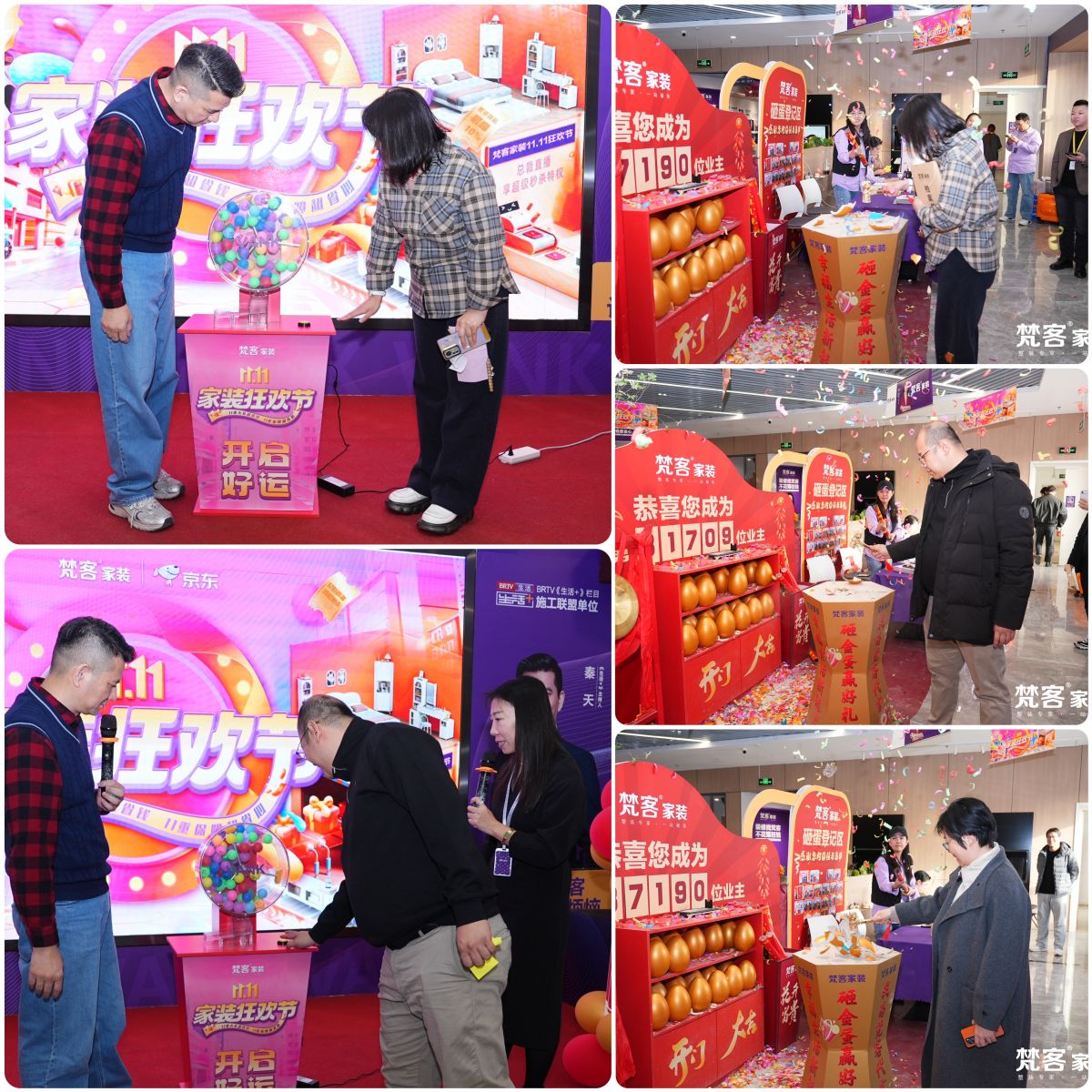 梵客家装狂欢节,业主不仅享受到好品质好服务好价格的装修,还在抽奖区、砸金蛋区收获了额外的惊喜,冰箱彩电洗衣机空调热水器等大家电、生活日用小电器…让赠礼一步到位。