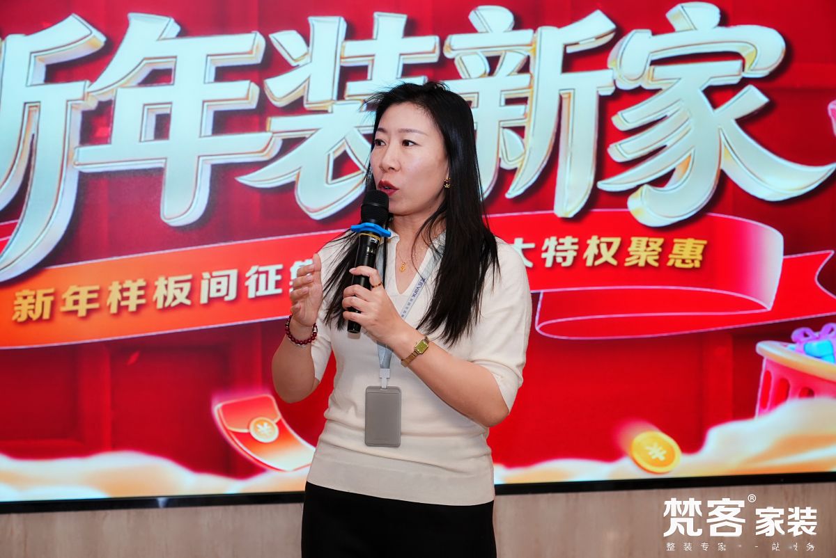 梵客集团副总裁/梵客家装总经理任琳女士也为大家带来“新年装新家专享升级大礼包”,以及样板间征集相关福利,特权加持,助业主朋友装修顺利、早日入住暖暖的新家。同时还向大家解读了梵客家装一直以来践行的“五好家装标准”,即“好品牌、好产品、好体验、好交付、好服务”,让大家能更清晰地了解梵客家装,装修省心安心放心。